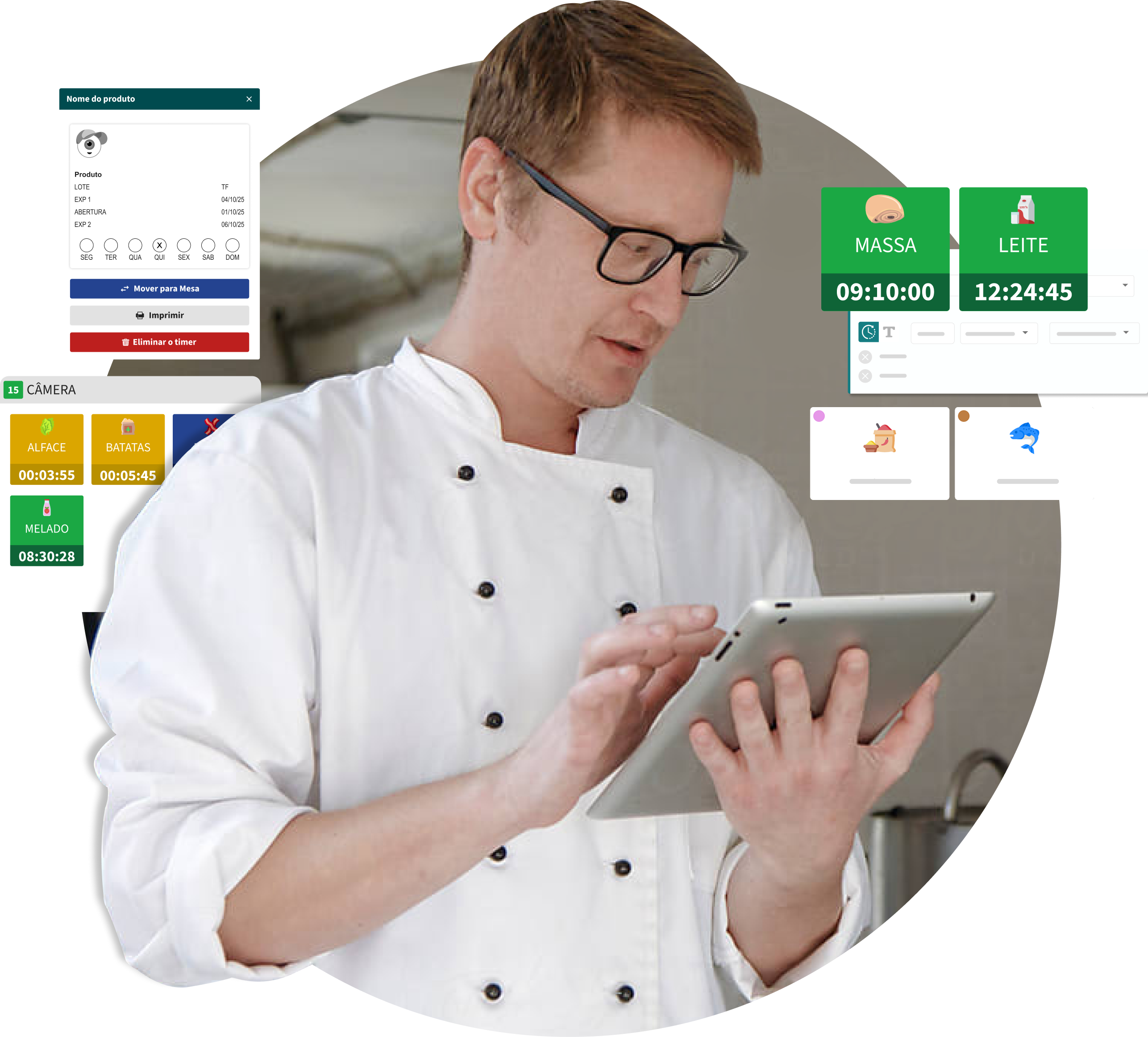 - Supervisão em tempo real de ingredientes em mesa, câmaras e vitrines